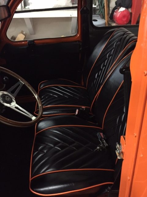 It is an orange and black 4-speed manual.  602 cc engine.  Has unique upholstery.