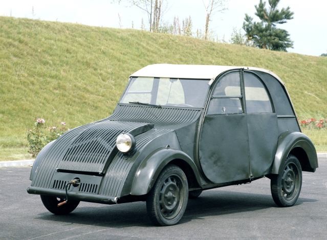 In 1937, the first prototype emerged, with a single headlight and weighing 370 kg, able to carry four people, 50 kg of luggage, and achieve a maximum speed of 50 km/h. Although 250 of these prototypes were built prior to the 1939 Paris Auto Show, the war intervened and all but four of them were scrapped to avoid having them fall into German hands.