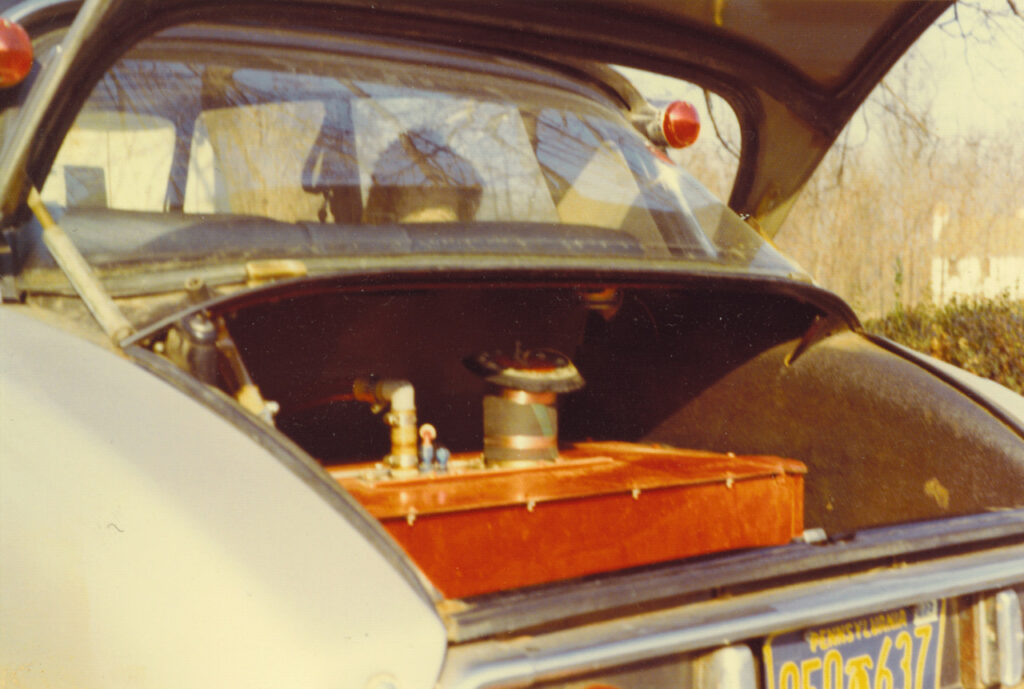 Because the Cannonball race was illegal, participants at the time maintained low profiles, making reliable documentation and photos scarce. Despite the lack of detailed information, I think a more plausible candidate for the car they drove might be the Citroën DS shown in the following photograph. Little is known about the photo, other than the car was owned by the Fergussons and their poodle can be seen the back seat. It is a late 1960’s DS21 Pallas, and it has a large auxiliary fuel tank in the trunk – precisely the kind of modification needed for a timed cross-country run. One account of the 1972 Cannonball indicated that an auxiliary fuel tank was one of the Fergusson’s strategies to effectively compete against much faster cars as fewer fuel stops saved refueling time. Notice also that it has a Pennsylvania license plate, which matches the Fergusson’s home at the time.