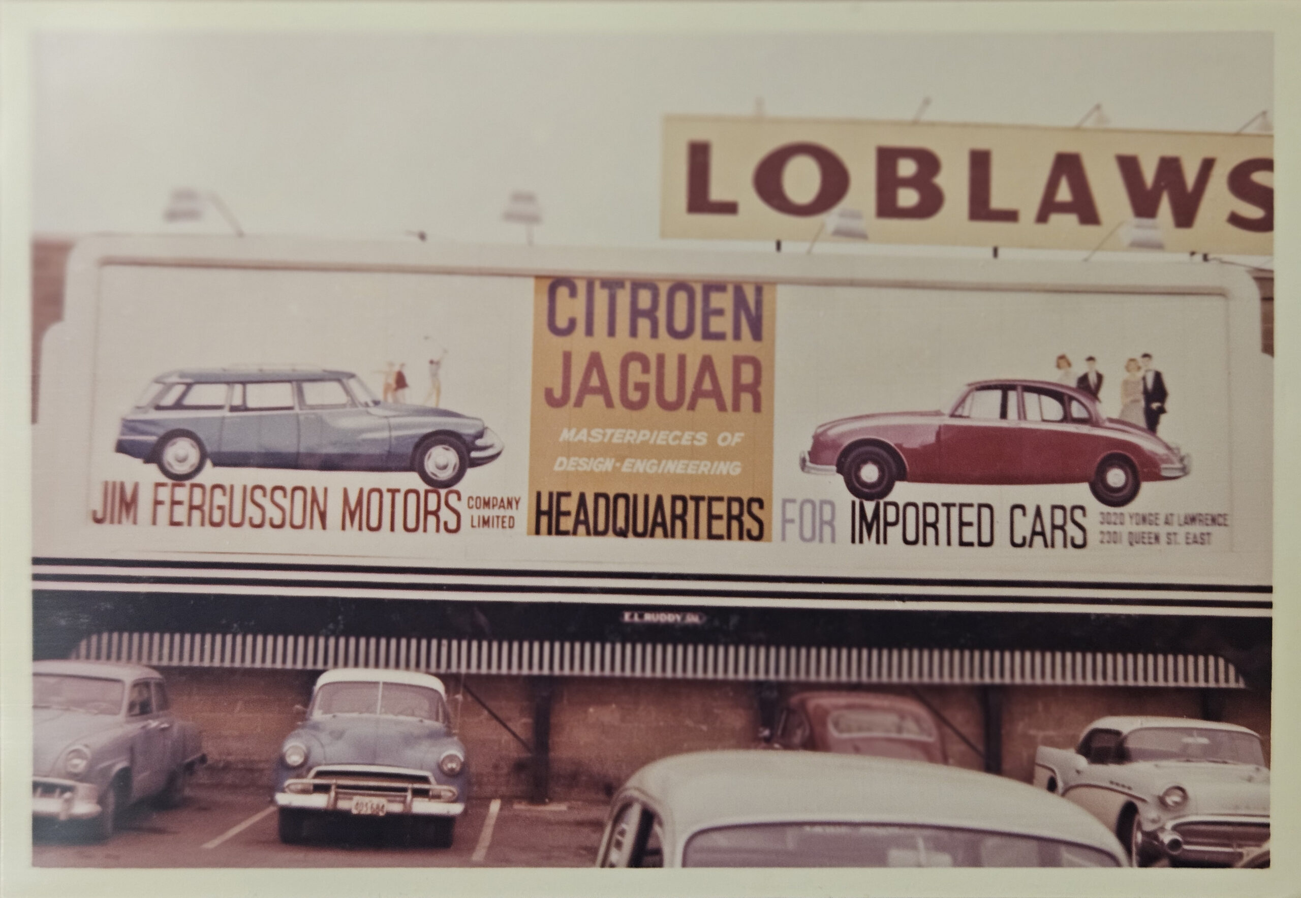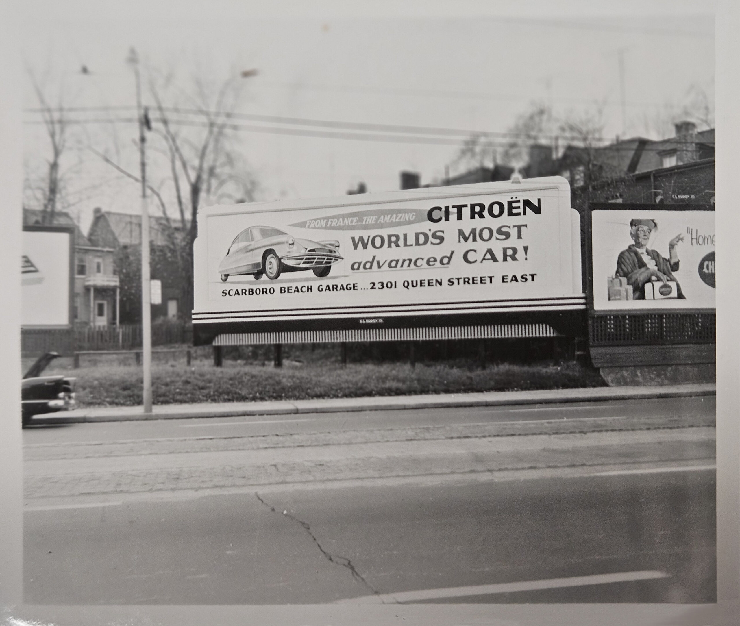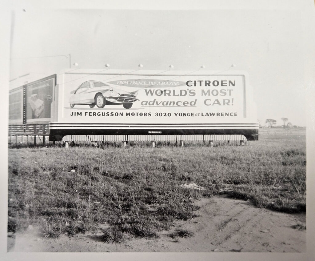 The Fergussons were clearly enamored with Citroëns. They worked to establish a network of third-party dealers across Ontario to sell the cars they imported. They invested in promotion by advertising Citroëns extensively in local newspapers. Their efforts even included commissioning large billboards across Toronto promoting DSs. George Dyke found photographs of several of these billboards hidden away in the Toronto city archives.