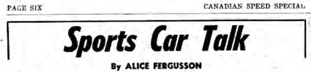 Alice Fergusson’s entry into competitive motorsport began in the 1940s. She competed in several events organized by the British Empire Motor Club, one of Canada’s earliest and most influential motorsport organizations. Her involvement with the club extended beyond competition as she later served as editor of its publication, Small Torque, reflecting both her technical knowledge and her active role within the motorsport community. She also wrote for various motorsport publications.