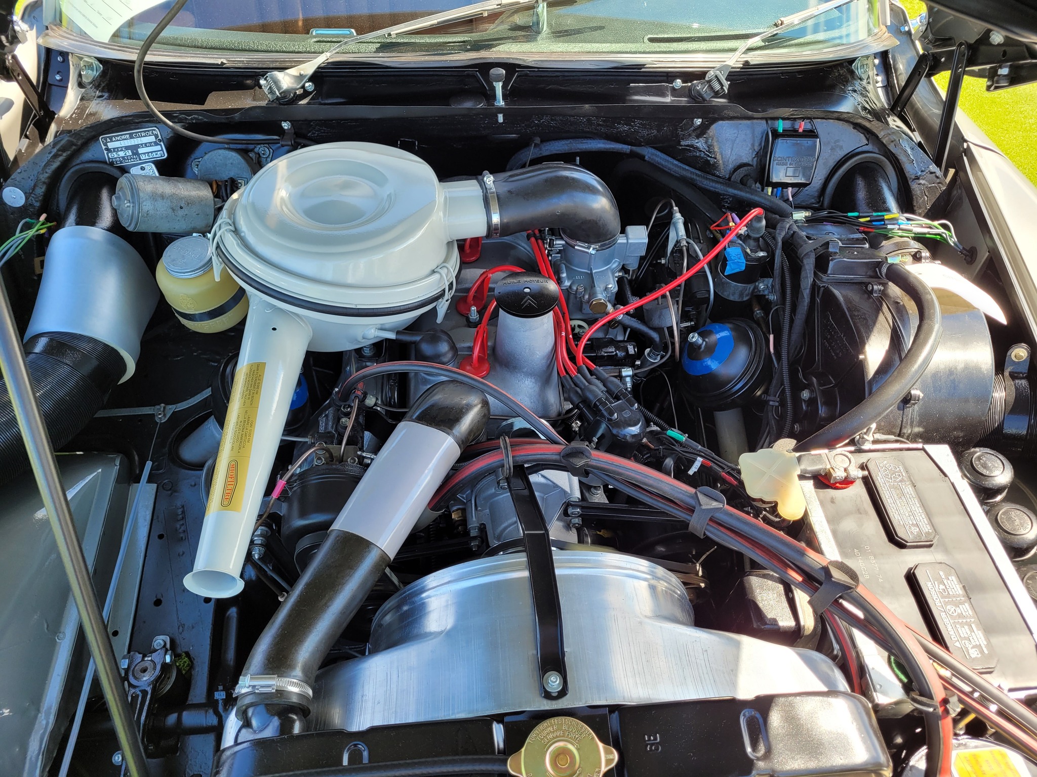 The Verte Argent Ami Super belongs to Peter Bichier. It uses the same 1015cc 4-cyliner air-cooled engine as in the early GS. Peter purchased the car in France, largely complete except for the interior. He finished the interior here with parts from Europe. The GS engine in an Ami body makes a very quick car. The Ami Super came with anti-roll bars and a larger fuel tank. Peter loves driving it in the spirited way it was intended.