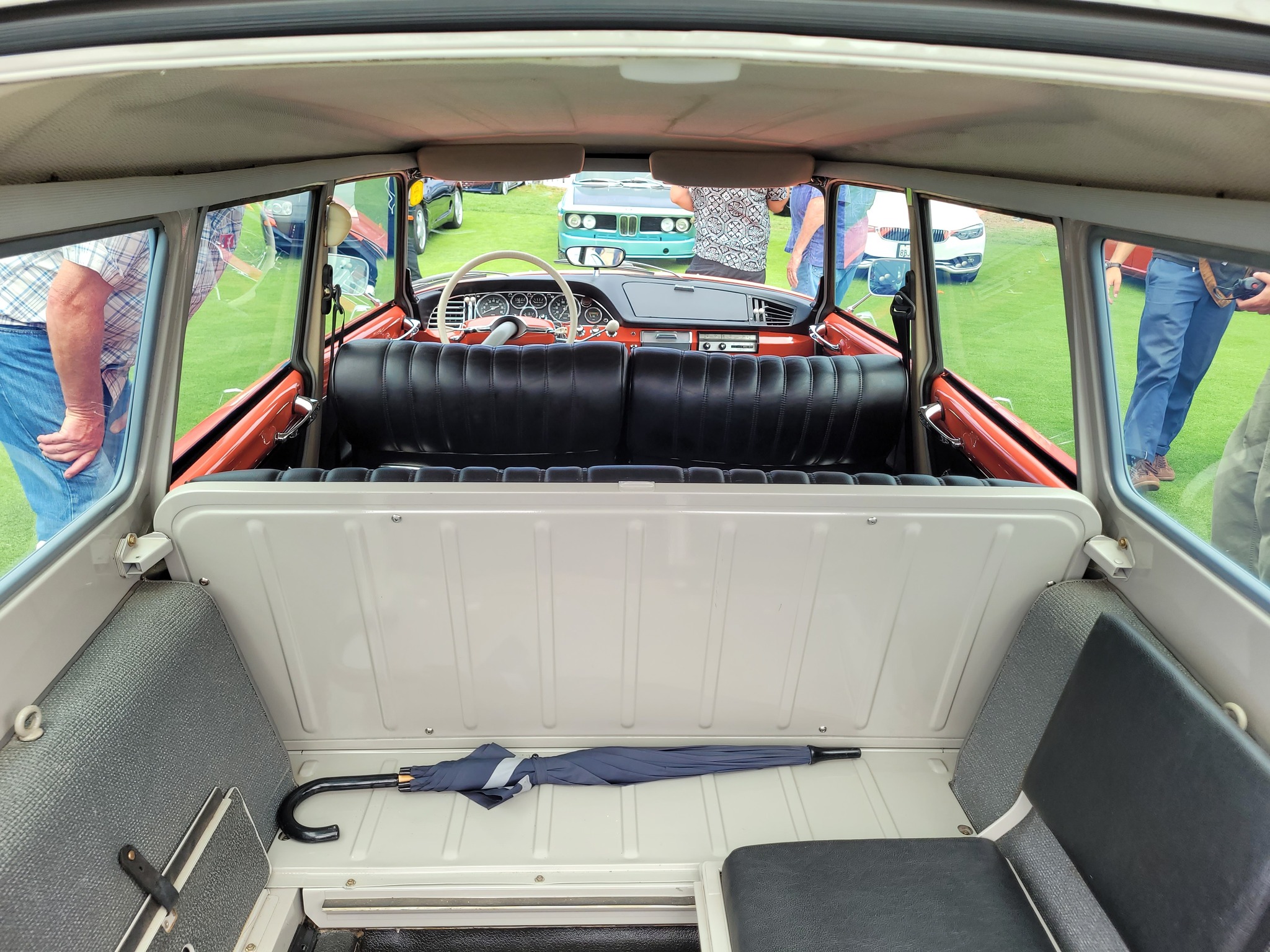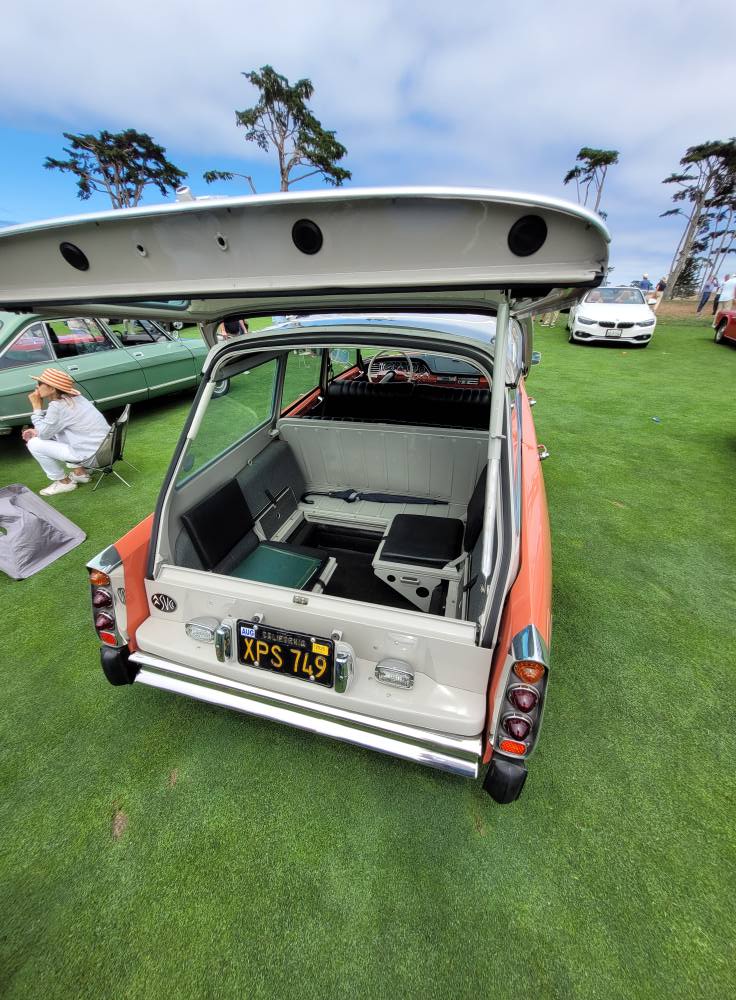 The Salmon colored D wagon is owned by Dennis Deusing. While not completely true to original, Dennis did a wonderful job on the restoration and incorporated his favorite Citroën items, such as the DS dash with Jeager instruments. The car is a crowd pleaser and drives well.