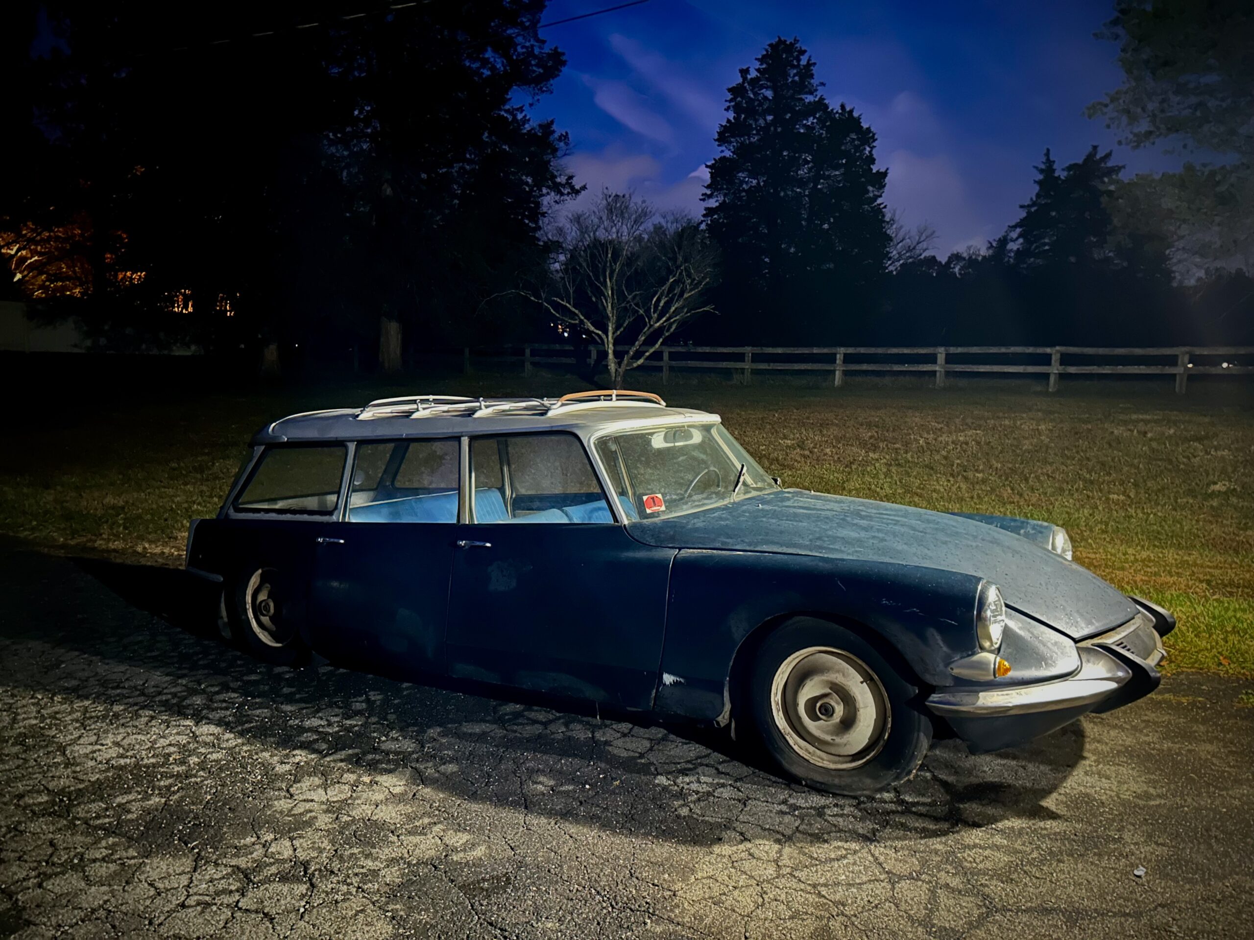 It fell in my lap. I really didn’t need another car as I have my hands full with my other Citroëns. But the DS had always intrigued me, especially because of the look of the early versions with the single headlights and the unsurpassed riding comfort not matched in my CX or GSA, even though they are both exceptional. As for the wagon version of the DS, I find the design of the rear sort of brusque or provoking with the fenders separated from the body of the car and its large wheel arches. With the roof rack, the wagon oozes adventure. You can say I was primed for a D. So, when this ID became available it only took me minutes to confirm that I would take it.