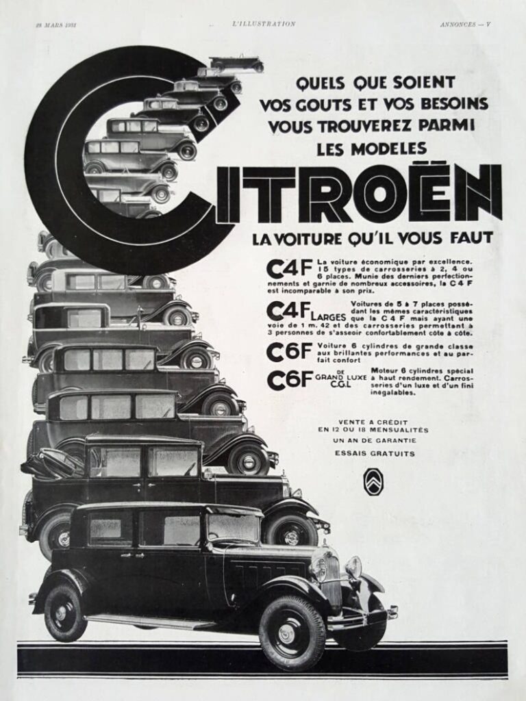 Returning to André Citroën and the car brand he founded in the aftermath of the First World War, the success of the Type A and its successors soon encouraged him to expand his range upward, encroaching on the territory of manufacturers like Delahaye, Hotchkiss, and even Peugeot and Renault. It’s important to remember that during this decade, nicknamed the “Roaring Twenties,” the Peugeot and Renault brands offered extensive lineups, including impressive six-cylinder models and, in Renault’s case, even eight-cylinder models from the early 1930s onward.